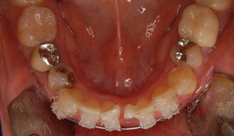 装置装着時: 前歯にのみブラケットをつけました。